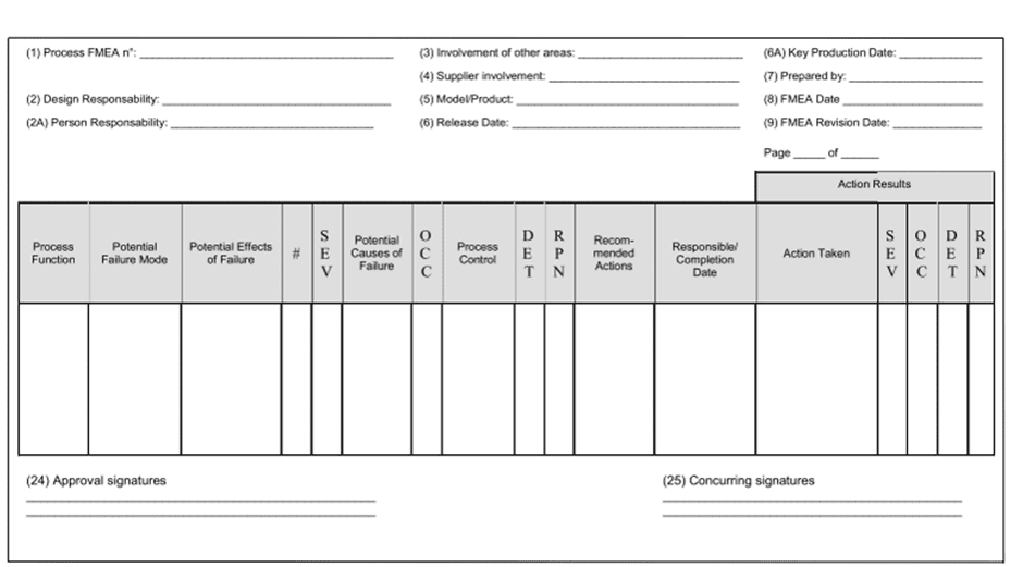 Here, the process function, failure type, potential impact, severity – score (SEV), potential cause, frequency of likelihood to occur (OCC) – score, how easy to detect (DET) – score are represented and the risk priority number is calculated as follows: – SEV x OCC x DET = RPN. Then necessary corrective actions are taken as per result.