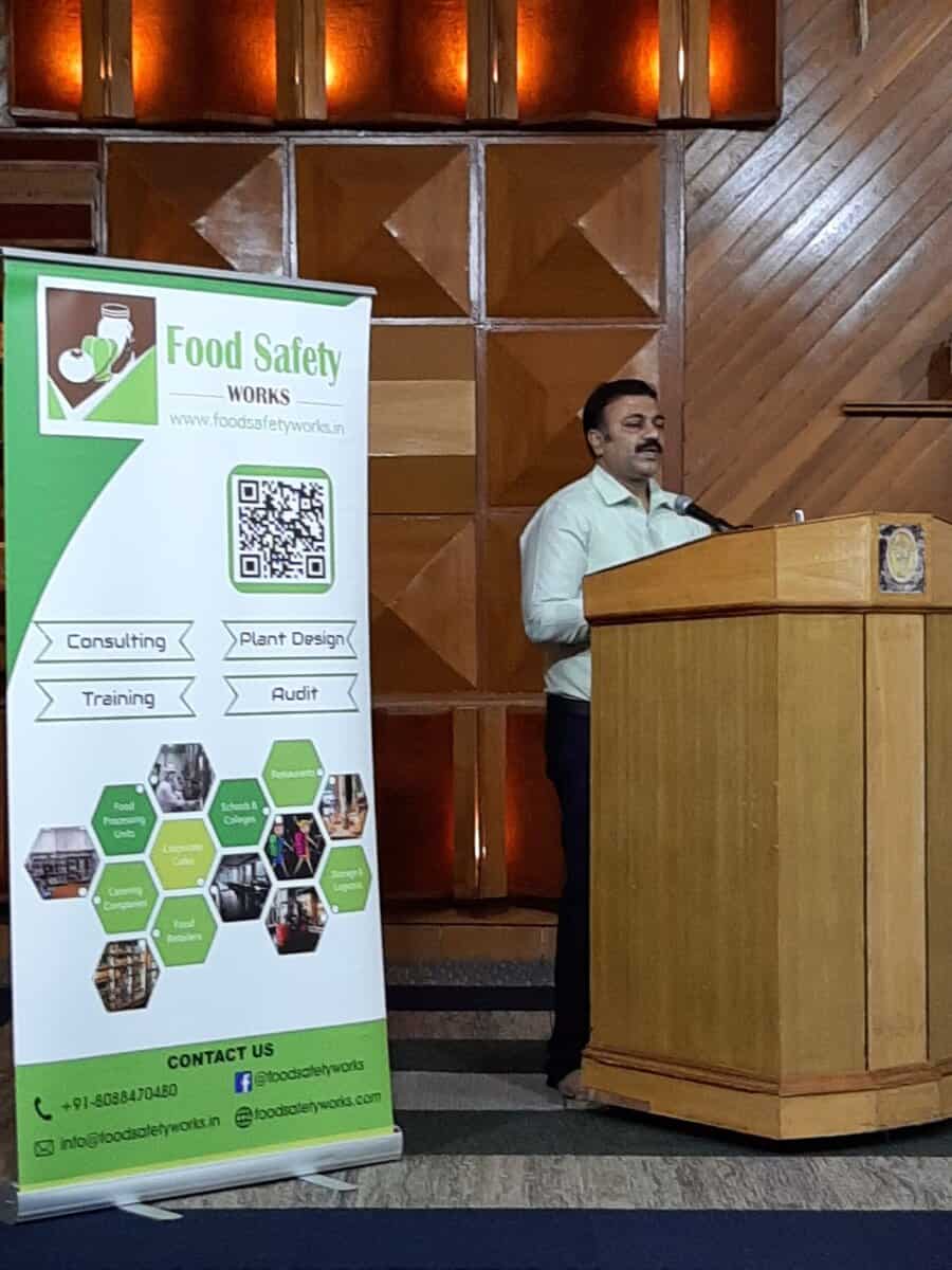Speaking on the occasion, His Holiness highlighted the importance of the program by emphasizing on offering of prasadam in safe and hygiene manner at place of worship, that food safety is not just desirable but its absolute necessity. He also expressed his pleasure for Food safety Works to have initiated this training program for their kitchen staff. Mr. Dhanya Kumar from FSSAI further added that how safe bhog should be, as the devotees will receive and consume the food given in the temple. He also spoke about Prevention of Food Adulteration Act, 1950 and FSS act 2006, by FSSAI to ensure that consumers eat safe food.